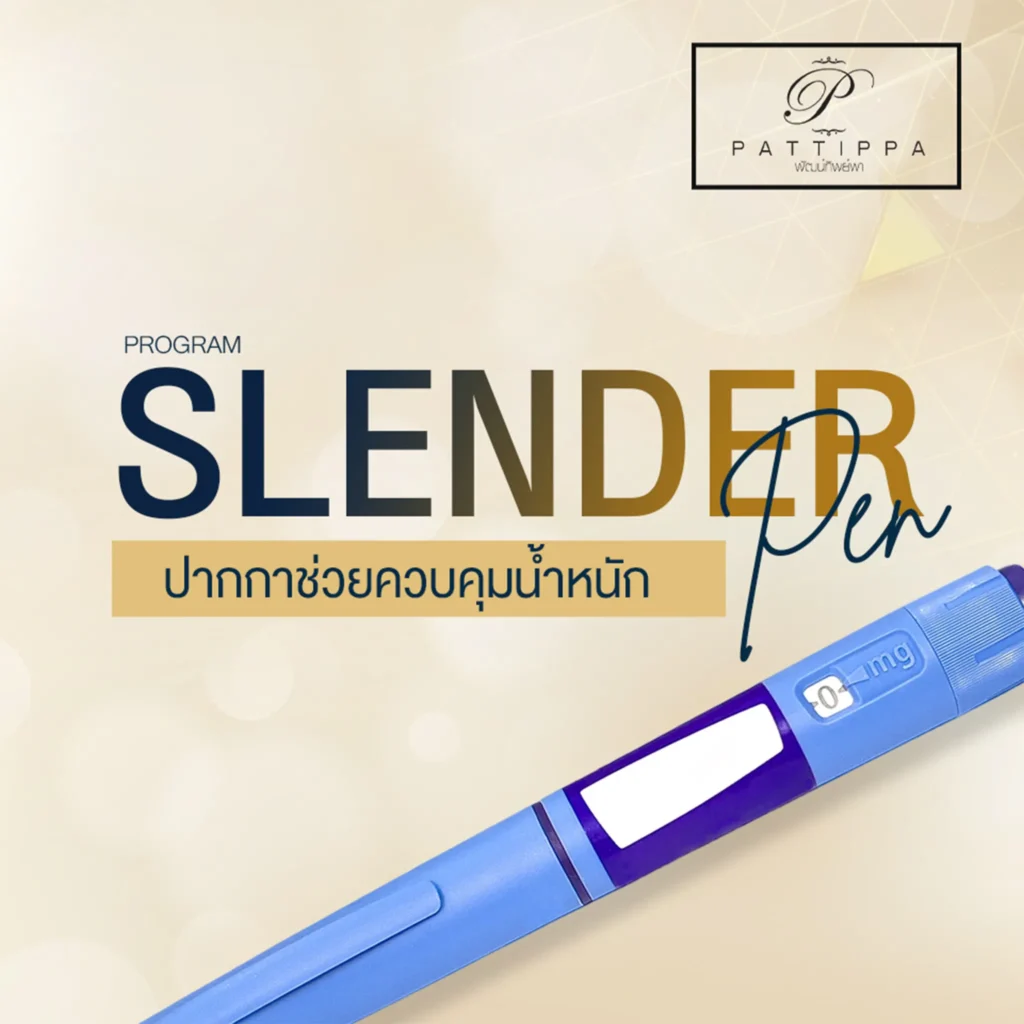 โปรแกรม Slender Pen ที่ Pattippa Clinic เป็นโปรแกรมช่วยลดน้ำหนักที่ออกแบบมาให้เห็นผลลัพธ์แลดูเป็นธรรมชาติ โดยไม่ต้องอดอาหารและไม่ต้องผ่าตัด โปรแกรมนี้ใช้เทคโนโลยีการฉีด โปรแกรม Slender Pen ซึ่งเป็นสารช่วยควบคุมความหิว กระตุ้นการเผาผลาญไขมัน และปรับสมดุลการทำงานของระบบเผาผลาญในร่างกาย ช่วยให้ผู้เข้ารับบริการลดน้ำหนักได้อย่างมีประสิทธิภาพและยั่งยืน เหมาะสำหรับผู้ที่ต้องการลดน้ำหนักแบบไม่ต้องอดอาหารและไม่ต้องออกกำลังกายอย่างหนัก