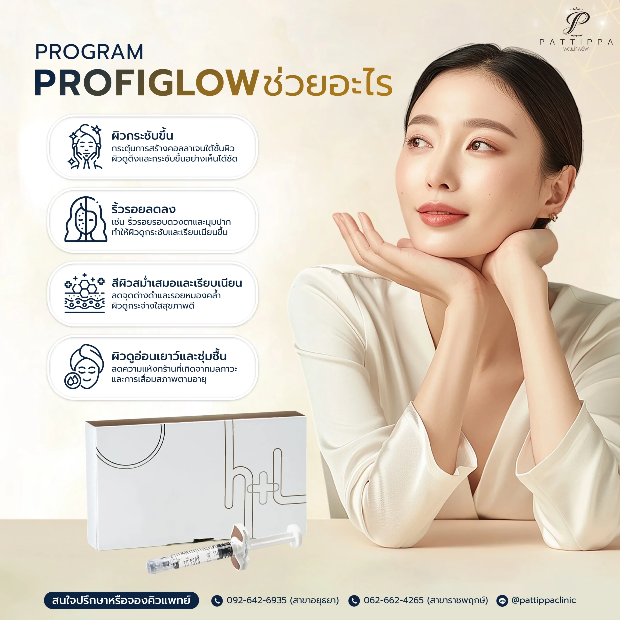 จากที่ได้กล่าวไปตั้งแต่ข้างต้นว่า โปรแกรม Profiglow หรือ โปรแกรม Profhilo นั้น เป็นโปรแกรมฟื้นฟูผิวที่ช่วยลดเลือนริ้วรอยและความเหี่ยวย่นโดยใช้พลังงานความร้อนที่ควบคุมได้อย่างแม่นยำ เทคนิคนี้ช่วยกระตุ้นการสร้างคอลลาเจนและอิลาสตินใหม่ ทำให้ผิวกลับมาเรียบเนียนและกระชับขึ้นโดยไม่ต้องพึ่งการผ่าตัด