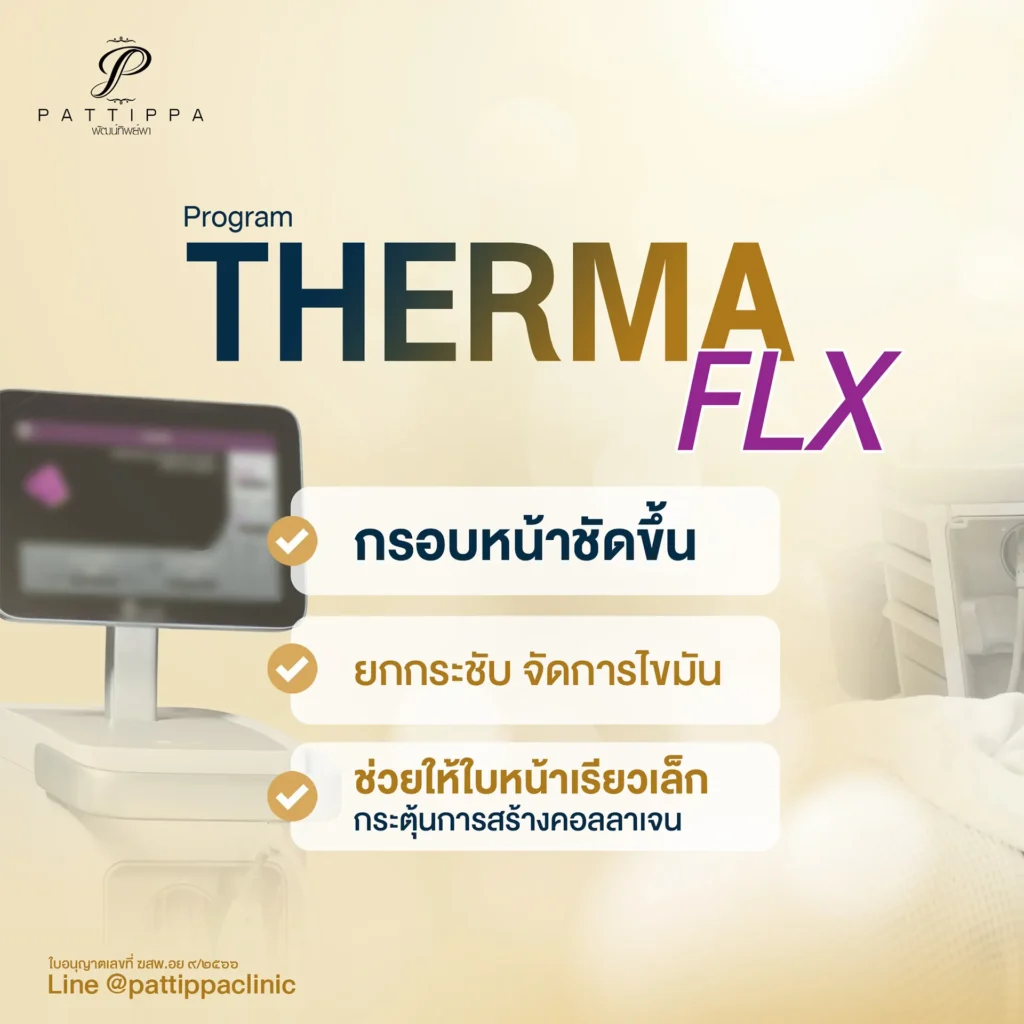 “Thermage flx” เป็นอีกหนึ่งเทคโนโลยีสำหรับการยกกระชับที่หลาย ๆ คนอาจไม่รู้จักหรือคุ้นเคยกับชื่อนี้มากนัก  ซึ่งต้องบอกก่อนว่า Thermage เป็นนวัตกรรมใหม่ที่ยกกระชับผิวหน้าโดยไม่ต้องผ่าตัด ช่วยปรับผิวให้เต่งตึง เรียบเนียน สลายเซลล์ไขมันบางส่วน และกระตุ้นการสร้างคอลลาเจน ช่วยให้ใบหน้ากลับมาสดใส ไร้ริ้วรอย แลดูอ่อนเยาว์โดยไม่มีบาดแผลอีกด้วย สิ่งต่าง ๆ ที่ได้กล่าวมาจึงเป็นเหตุผลที่ว่าทำไมทุก ๆ คนต้องทำความรู้จักกับเทคโนโลยีชนิดนี้