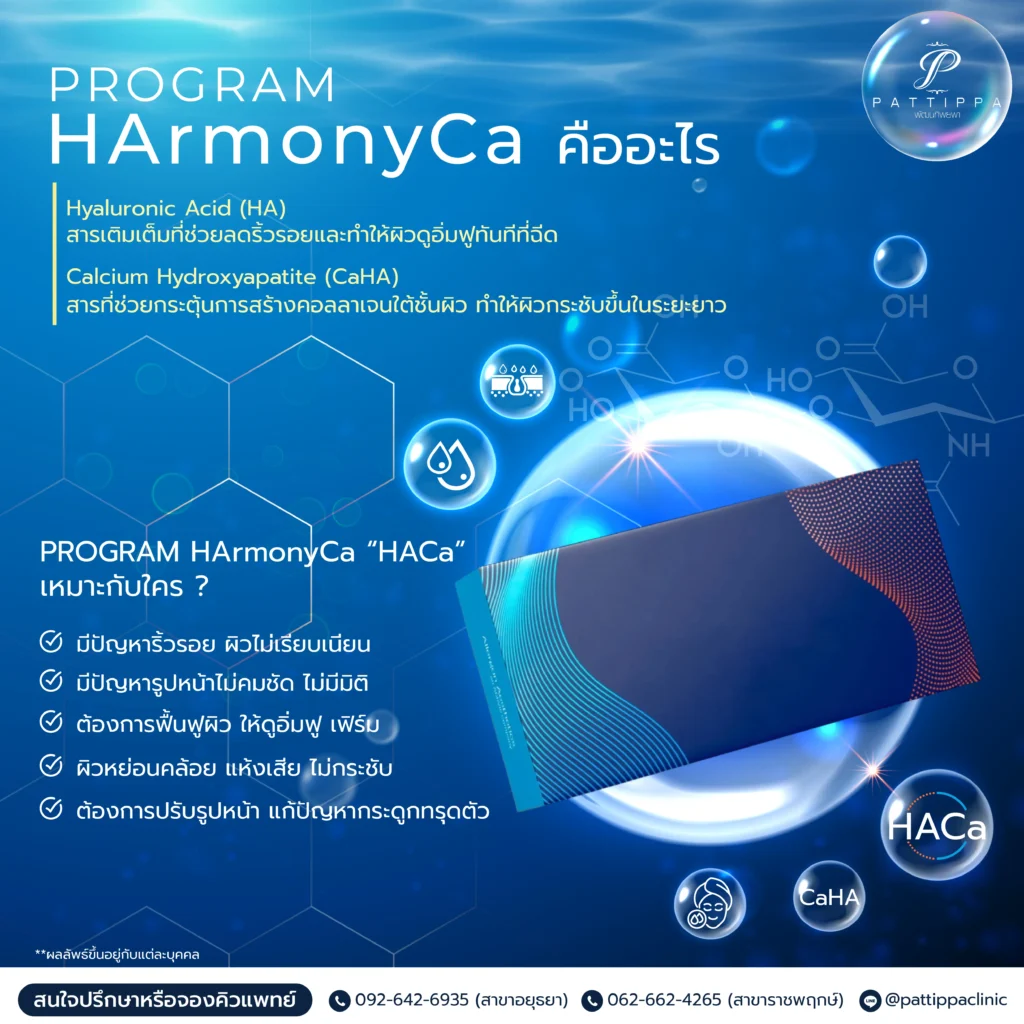 ท้ายที่สุด โปรแกรม HArmonyCa คือทางเลือกใหม่สำหรับการดูแลผิวหน้าแบบองค์รวม ด้วยการผสาน Hyaluronic Acid และ Calcium Hydroxyapatite เข้าด้วยกัน โดยไม่เพียงช่วยเติมเต็มริ้วรอยเท่านั้น แต่ยังช่วยกระตุ้นการสร้างคอลลาเจนในระยะยาว ทำให้ผิวกระชับและแข็งแรงยิ่งขึ้นอีกด้วย